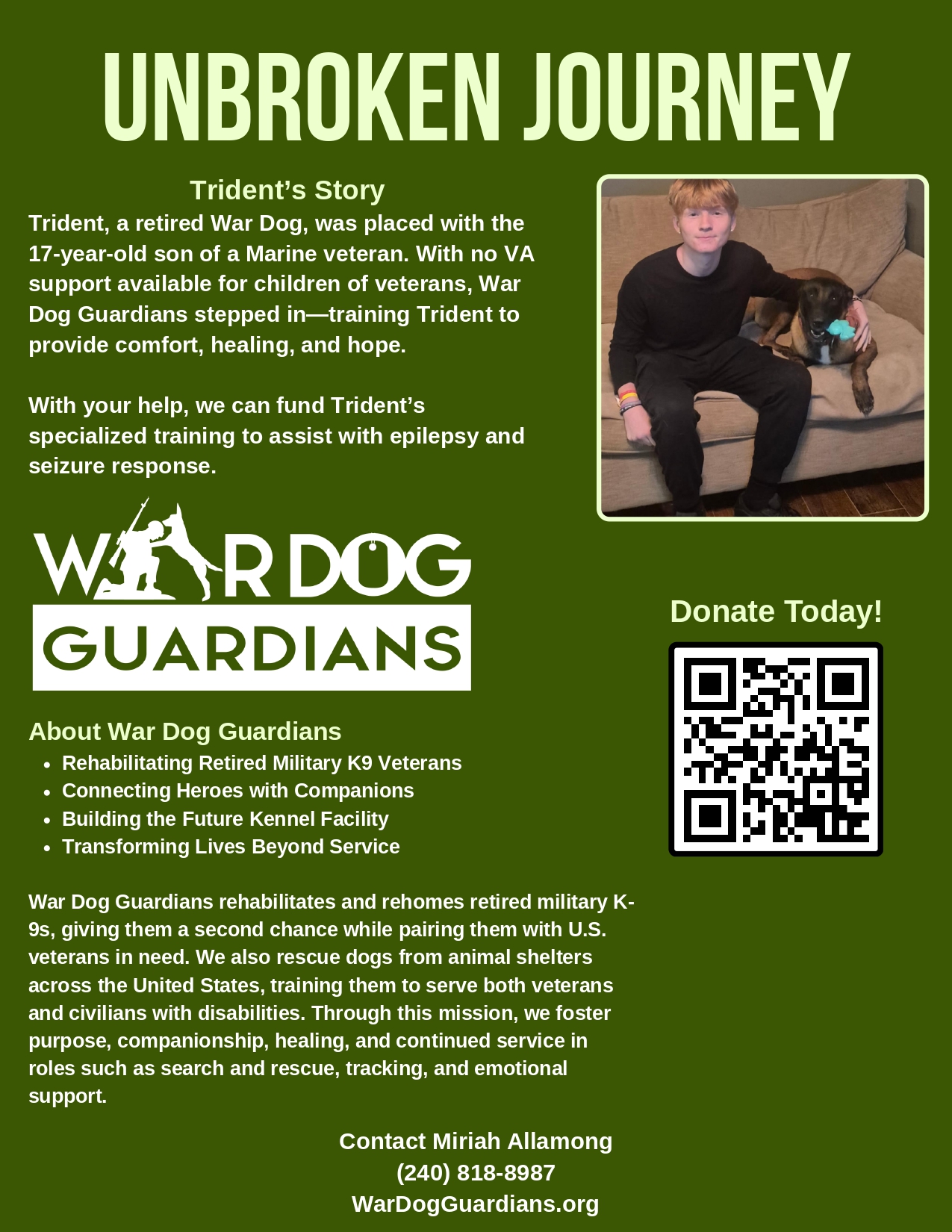 We rehabilitate retired military K-9 veterans, connecting them with U.S. veterans and improving their lives. We rescue and rehome K-9 veterans, offering them a second chance, providing search-and-rescue, tracking, homeland security missions, and emotional support, and prioritizing connections between heroes and loyal K-9 companions. Our organization actively pursues the goals of transforming lives, fostering purpose, companionship, and healing for veterans and dogs. We strive to make a positive impact, honor sacrifices, and create a brighter future for veterans and beyond. Our commitment extends beyond that mission to serve our broader community by rescuing dogs of all breeds from shelters across the United States and placing them with non-veterans who need service support. We strive to transform lives, foster purpose, companionship, and healing for veterans, dogs, and the communities we serve.